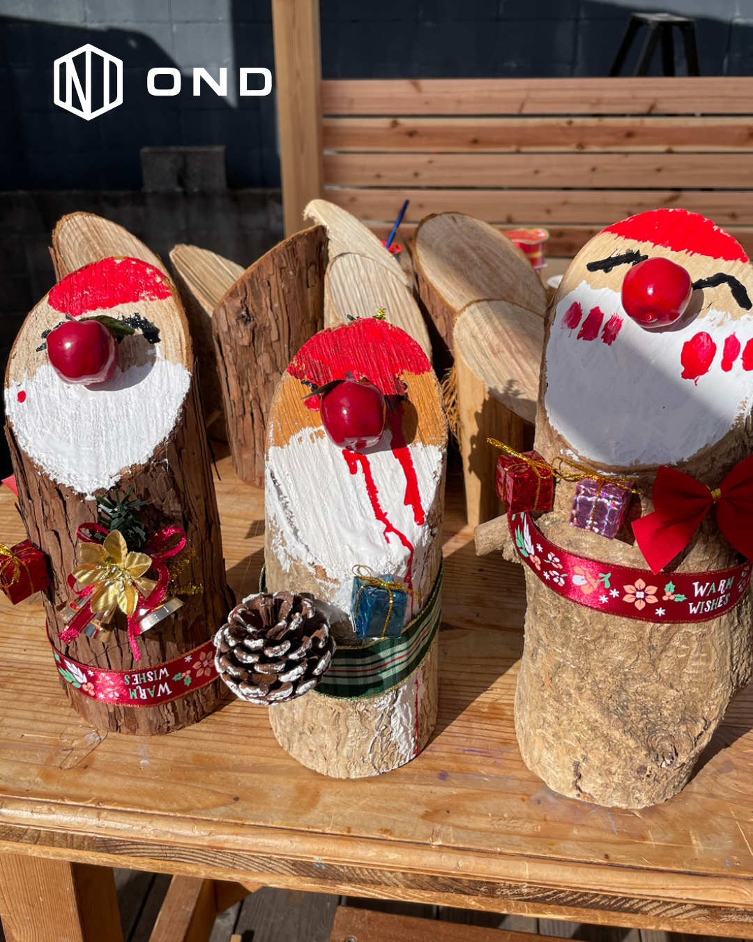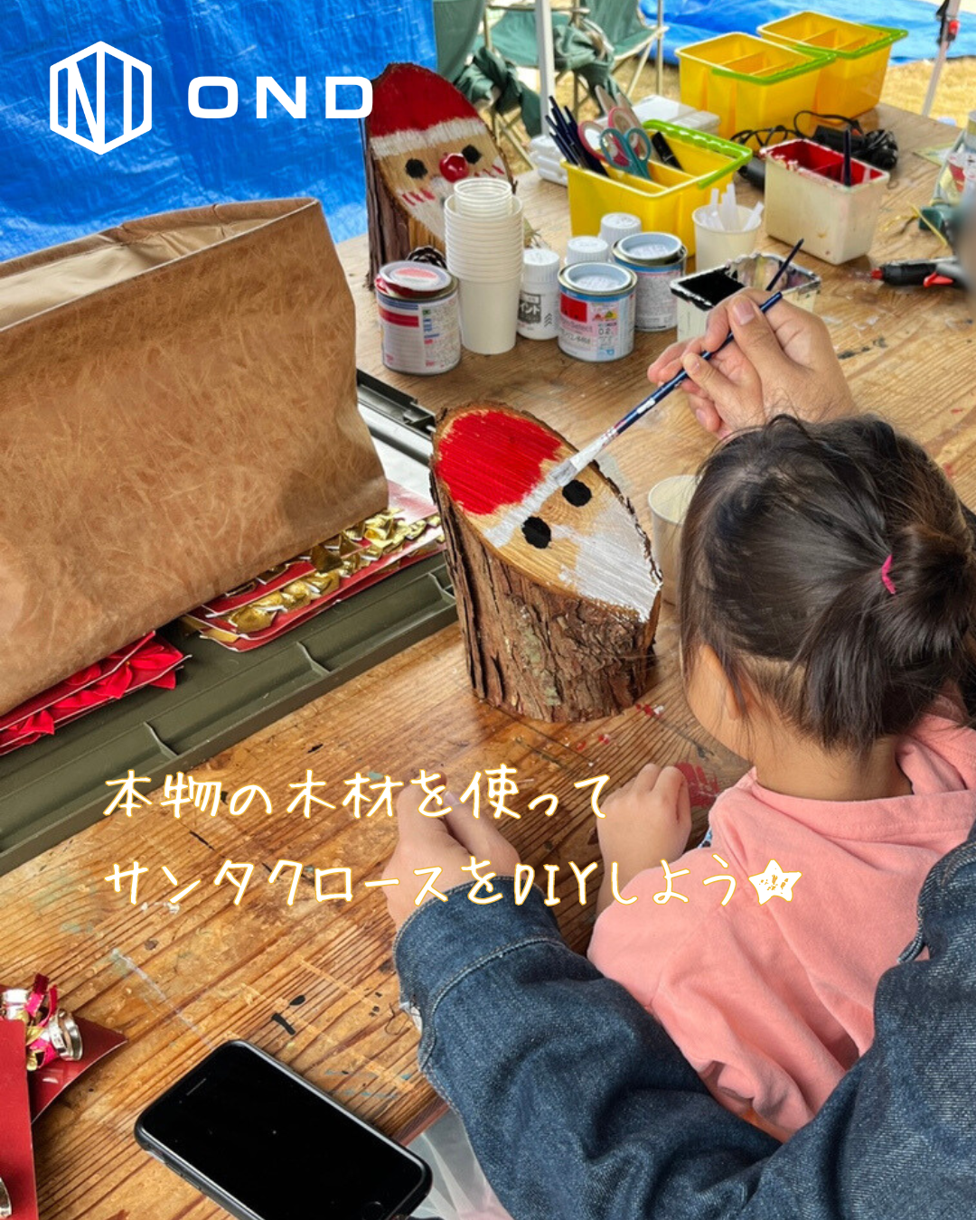 好きな木材を選ぶところから始まり、色を塗ったり、飾りをつけたりして、自分だけのサンタクロースを作ろう★