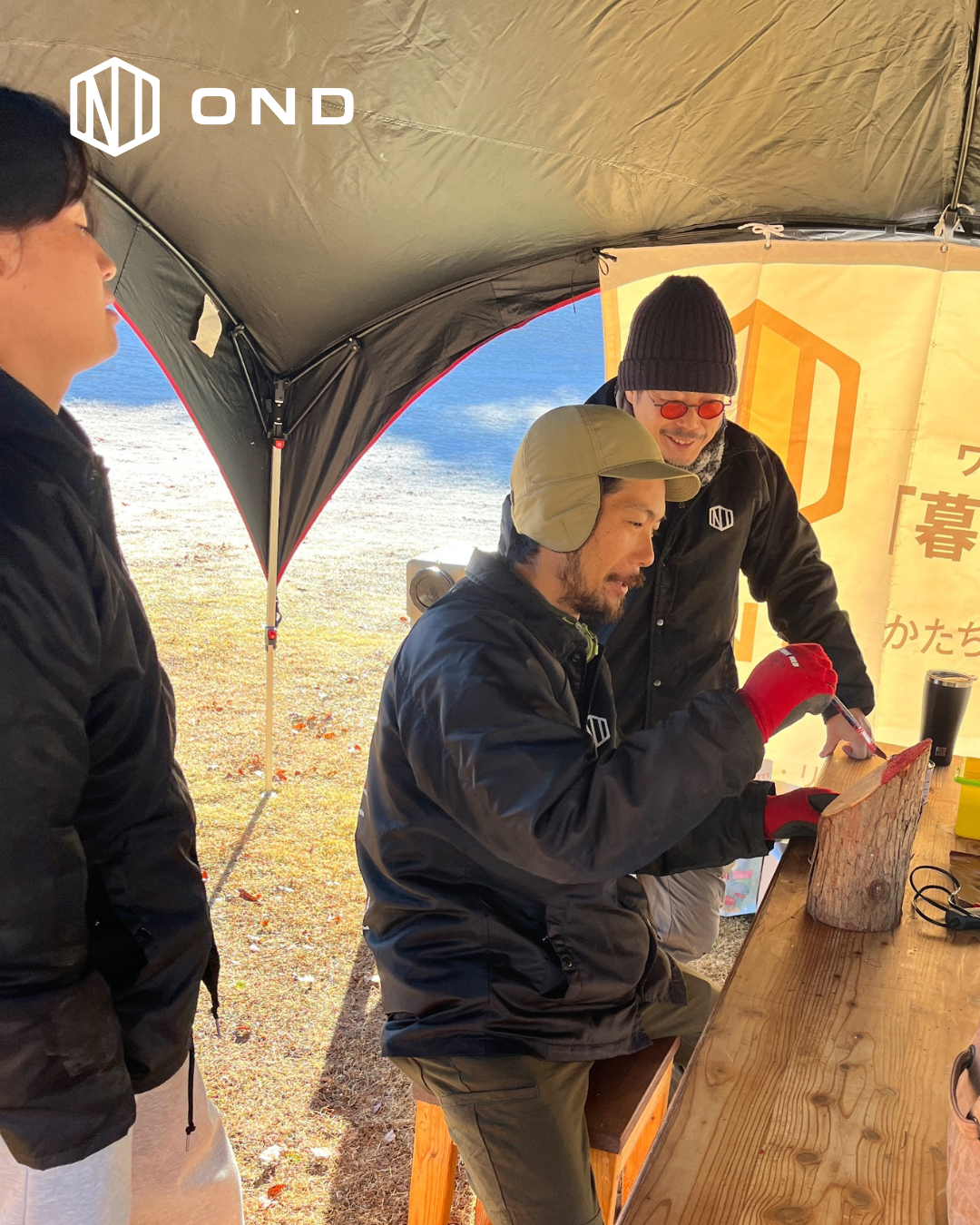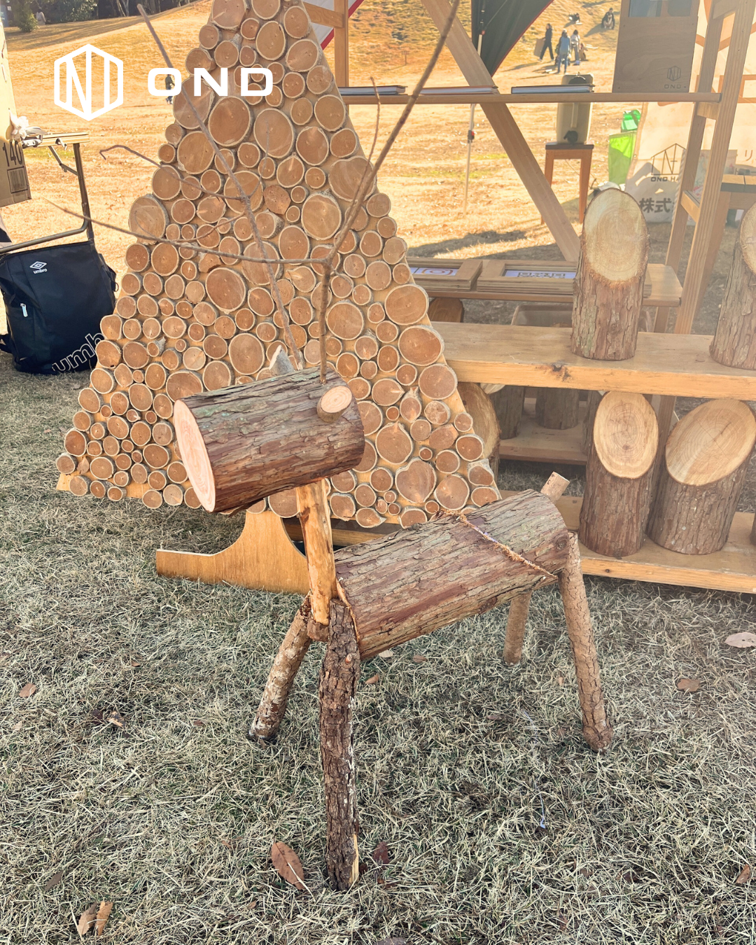 オープンまでに時間があったので、落ちていた枝などを使って、トナカイを作ってしまうOND職人。