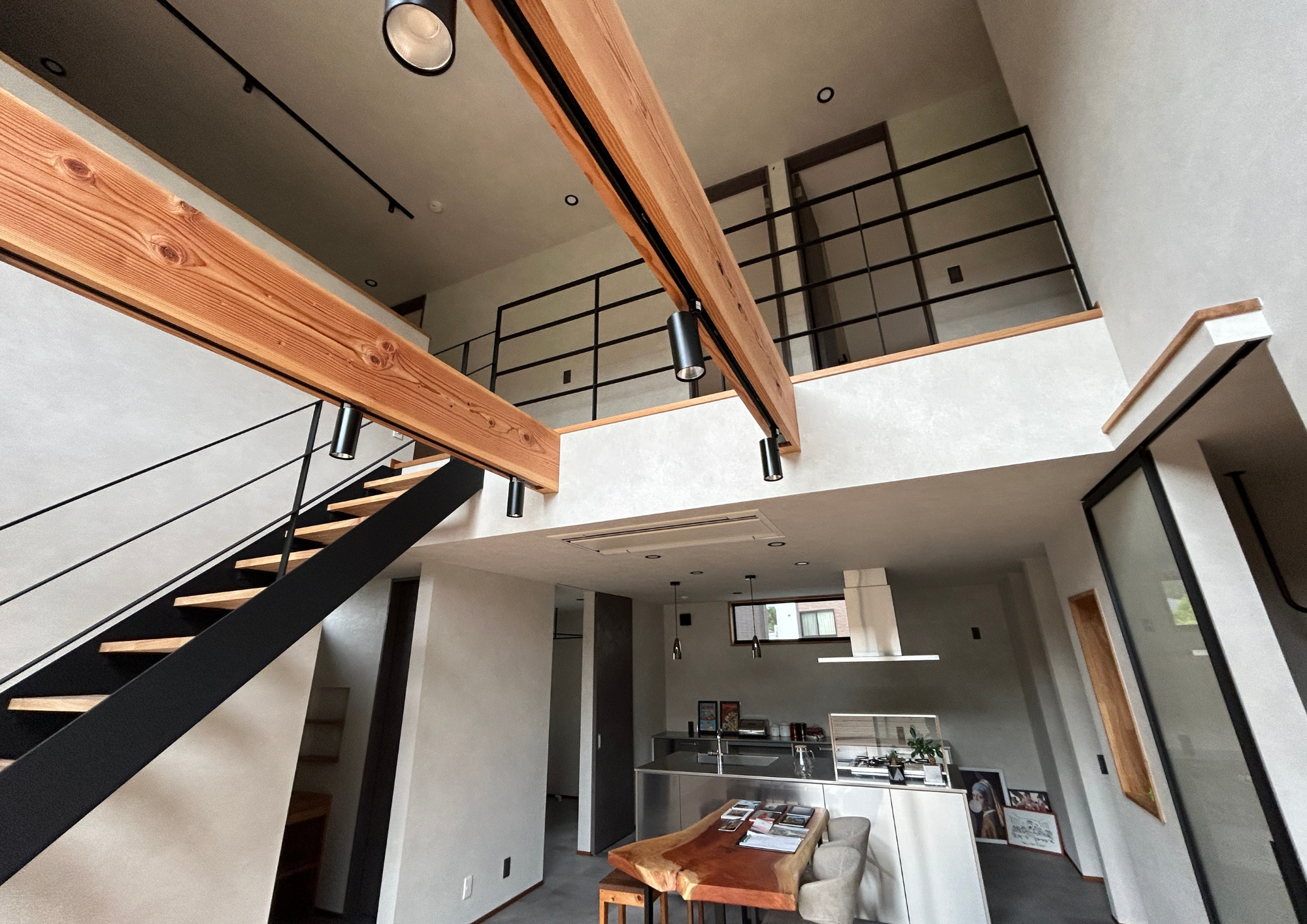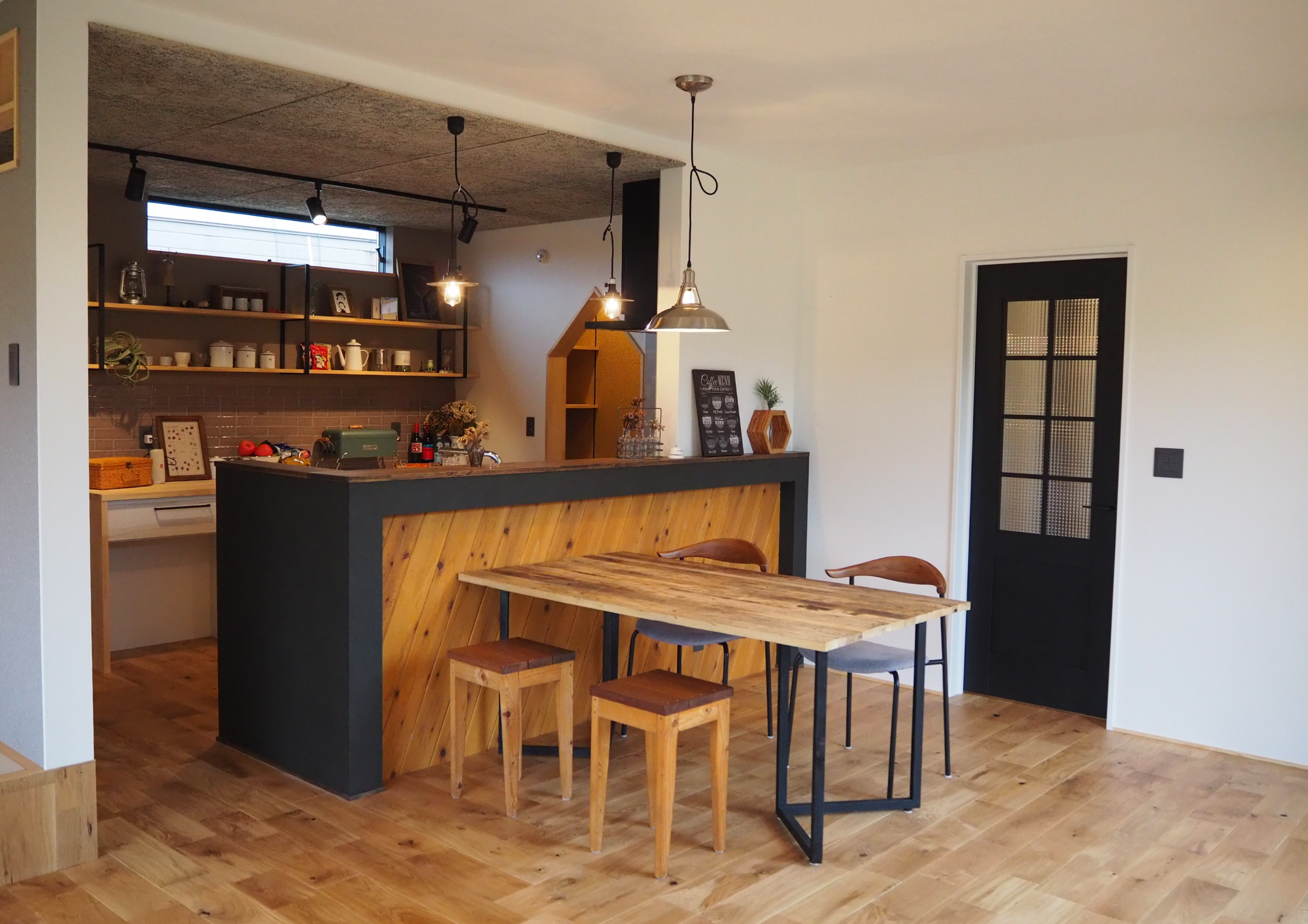 インダストリアルなかっこ良さと木の暖かさを併せ持つ、まさにカフェのようなおうちです。
